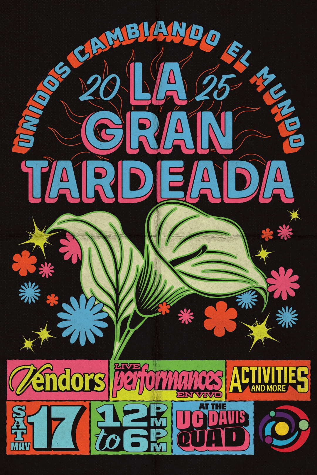 My poster design was selected as the winning identity for UC Davis's La Gran Tardeada, an annual tradition hosted by the Cross Cultural Center that celebrates the Chicanx/Latinx community through food, music, and dance. Drawing from the hand-painted street-sign aesthetics of my childhood between Tijuana and San Diego and incorporating client-requested floral motifs, I created a vibrant visual that honored cultural heritage and was featured across posters, totes, shirts, and stickers.